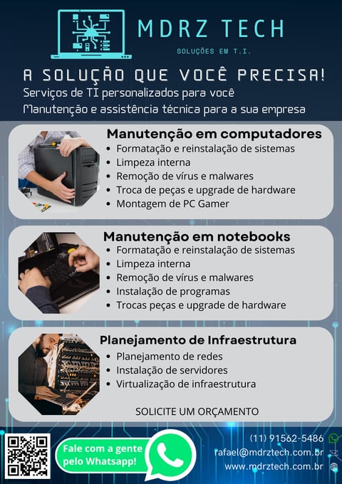 Estamos com o site em construção, por enquanto fique com o flyer demonstrando um pouco dos nossos serviços.